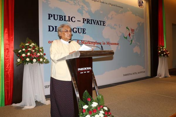 ပြည်ထောင်စုဝန်ကြီး ဒေါက်တာသန်းမြင့် “Digital Trade in a Digital Economy – Public- Private Dialogue on Emerging E-Marketplace in Myanmar” သို့ တက်ရောက် အဖွင့်အမှာစကားပြောကြား
