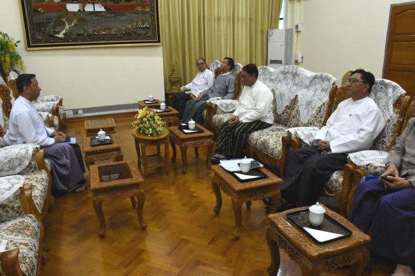 ပြည်ထောင်စုဝန်ကြီး ဒေါက်တာသန်းမြင့်သည် အရှေိ့တောင်အာရှနိုင်ငံများအသင်း (အာဆီယံ) ဆိုင်ရာ မြန်မာအမြဲတမ်းကိုယ်စားလှယ်အဖြစ် ခန့်အပ်ပြီးဖြစ်သော ဦးအောင်မျိုးမြင့်အား လက်ခံတွေ့ဆုံ