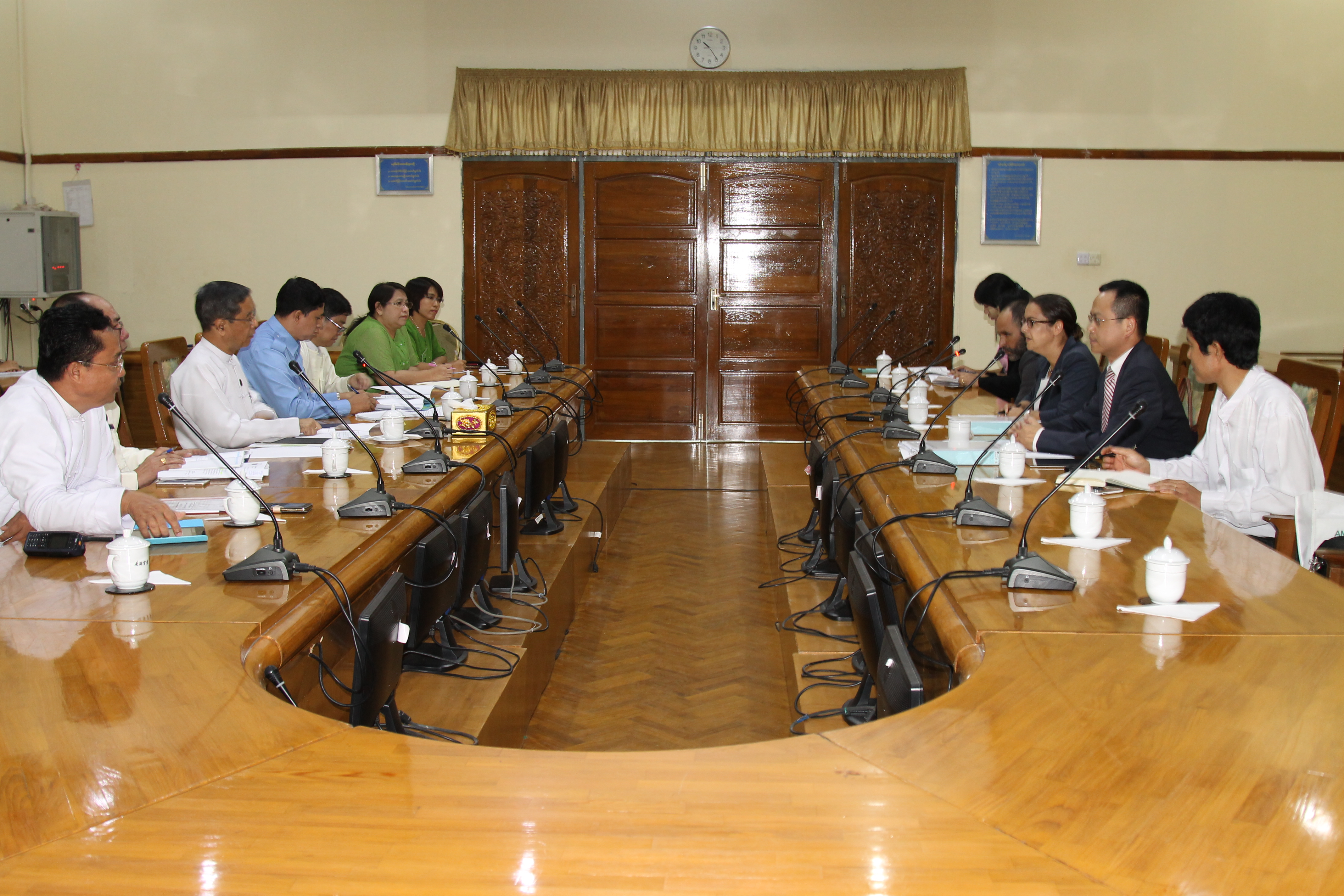 ၂၀၁၆ ခုနှစ်၊ အောက်တိုဘာလ ၂၁ ရက်နေ့ (၁၀ း၁၅) နာရီအချိန်တွင် စီးပွားရေးနှင့်ကူးသန်းရောင်းဝယ်ရေးဝန်ကြီးဌာန၊ အမြဲတမ်းအတွင်းဝန် ဦးတိုးအောင်မြင့် သည် 2016 IMF Article IV Consultation Mission မှ Mission Chief ဖြစ်သူ Mr. Yongzheng Yang ဦးဆောင်သည့် ကိုယ်စားလှယ်အဖွဲ့အား ဝန်ကြီးရုံး အစည်းအဝေးခန်းမ၌ လက်ခံတွေ့ဆုံ