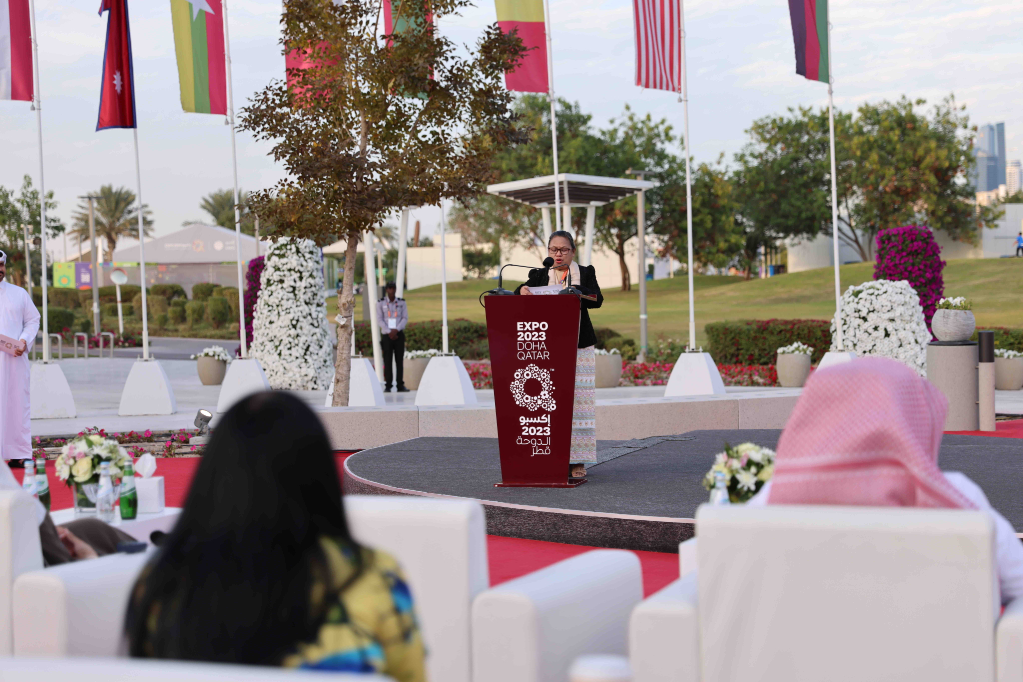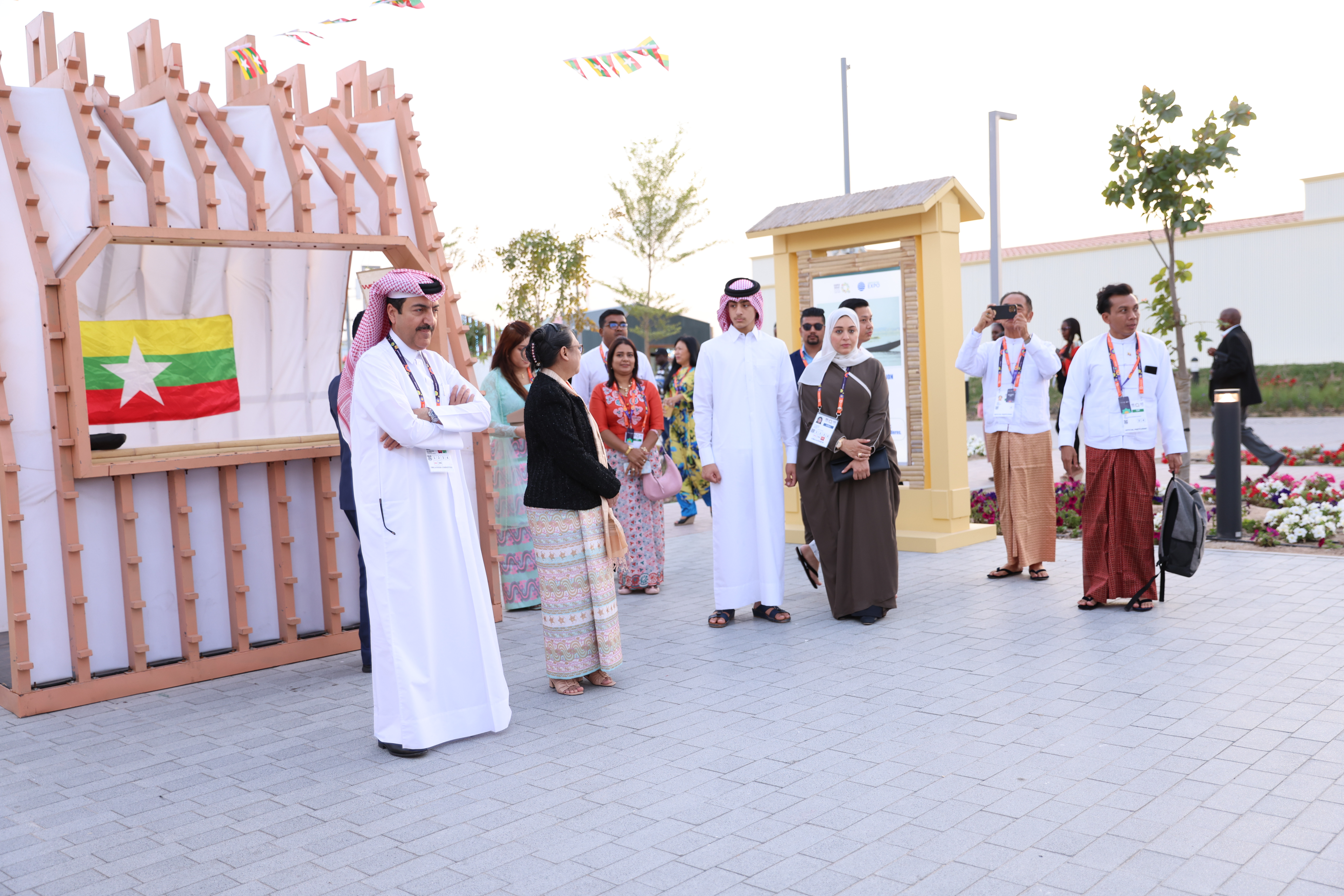 Expo 2023 Doha ၏ မြန်မာနေ့အခမ်းအနားကို ၂၀၂၄ခုနှစ်၊ ဇန်နဝါရီလ ၂၆ ရက်နေ့တွင် ကာတာနိုင်ငံ၊ ဒိုဟာမြို့၊ AI B Park ရှိ Expo House ၌ ကျင်းပပြုလုပ်ရာ စီးပွားရေးနှင့် ကူးသန်း ရောင်းဝယ်ရေးဝန်ကြီးဌာန၊ မြန်မာကုန်သွယ်မှုမြှင့်တင်ရေးအဖွဲ့ ညွှန်ကြားရေးမှူးချုပ် ဒေါ်နော်မူတာကပေါ၊ Expo 2023 Doha ၏ Secretary General Mr. Mohamed alkoori နှင့် ပြပွဲတွင် ပါဝင်ပြသသည့် နိုင်ငံများမှ Commissioner General များ ပါဝင်တက်ရောက်ခဲ့ပါသည်။