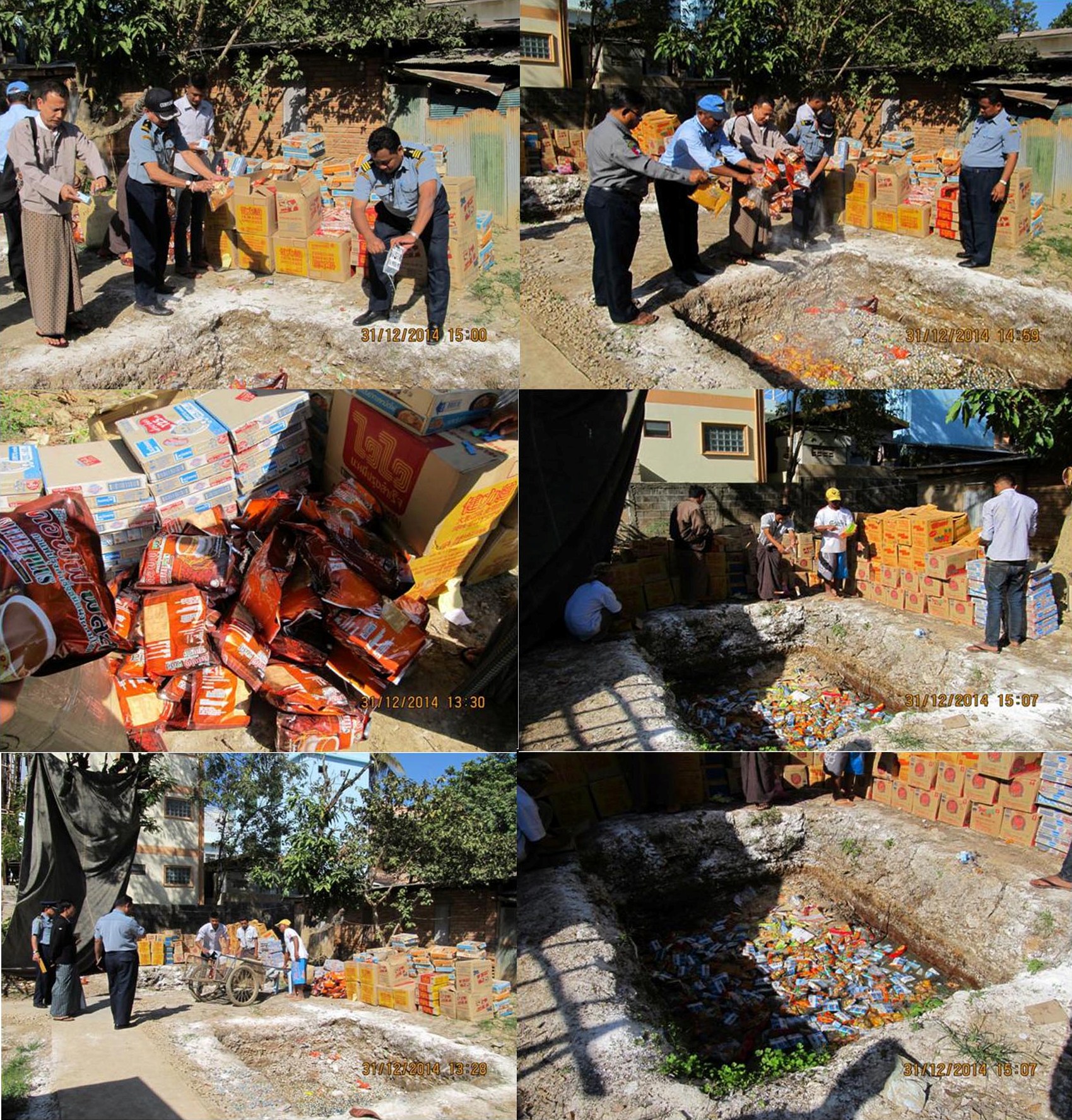 တရားမဝင်ကုန်သွယ်မှုတားဆီးထိန်းချူပ်ရေး၊ Mobile Team အဖွဲ့မှပြည်သူလူထုစားသုံးရန်မသင့်သည့် FDA ထောက်ခံချက်မပါရှိသည့်စားသုံးရန်မသင့်သော ခေါက်ဆွဲခြောက်၊ ဝေဖာ၊ ငါးသေတ္တာ၊ ပဲနို့ရည်၊ ခနောကြက်သားမှုန့်၊ Zhulianအမှတ်တံဆိပ်ပါကော်ဖီမစ်များကို အဖွဲ့စုံဖြင့်ဖျက်ဆီးခြ