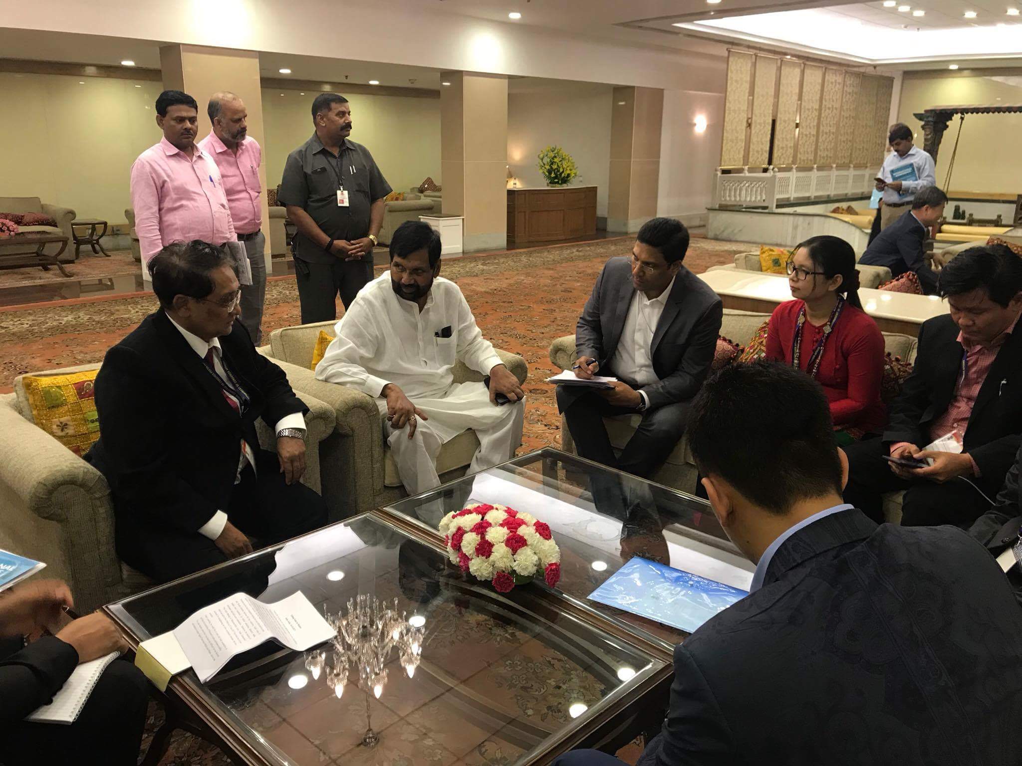 စီးပွားရေးနှင့်ကူးသန်းရောင်းဝယ်ရေးဝန်ကြီးဌာန၊ ပြည်ထောင်စုဝန်ကြီး ဒေါက်တာသန်းမြင့် ဦးဆောင်သည့် မြန်မာကိုယ်စားလှယ်အဖွဲ့သည် ၂၀၁၇ ခုနှစ်၊ အောက်တိုဘာလ ၂၆ ရက်နေ့မှ ၂၇ ရက်နေ့အထိ အိန္ဒိယနိုင်ငံ၊ နယူးဒေလီမြို့တွင် ကျင်းပပြုလုပ်သည့် “စားသုံးသူများ ဘေးကင်းလုံခြုံမှုရှိစေရေး ဒေသတွင်းညီလာခံ” သို့ တက်ရောက်ပြီး အိန္ဒိယနိုင်ငံ၊ ကုန်သွယ်ရေးနှင့် စက်မှုဝန်ကြီးဌာန၊ စားသုံးသူရေးရာဦးစီးဌာနနှင့် အိန္ဒိယနိုင်ငံကုန်သည် များနှင့် စက်မှုလုပ်ငန်းရှင်များအသင်းတို့မှ တာဝန်ရှိသူများနှင့် တွေ့ဆုံကာ နှစ်နိုင်ငံကုန်သွယ်မှုနှင့် ရင်းနှီးမြှုပ်နှံမှုတိုးမြှင့်ရေးဆိုင်ရာကိစ္စရပ်များအား ဆွေးနွေးခဲ့