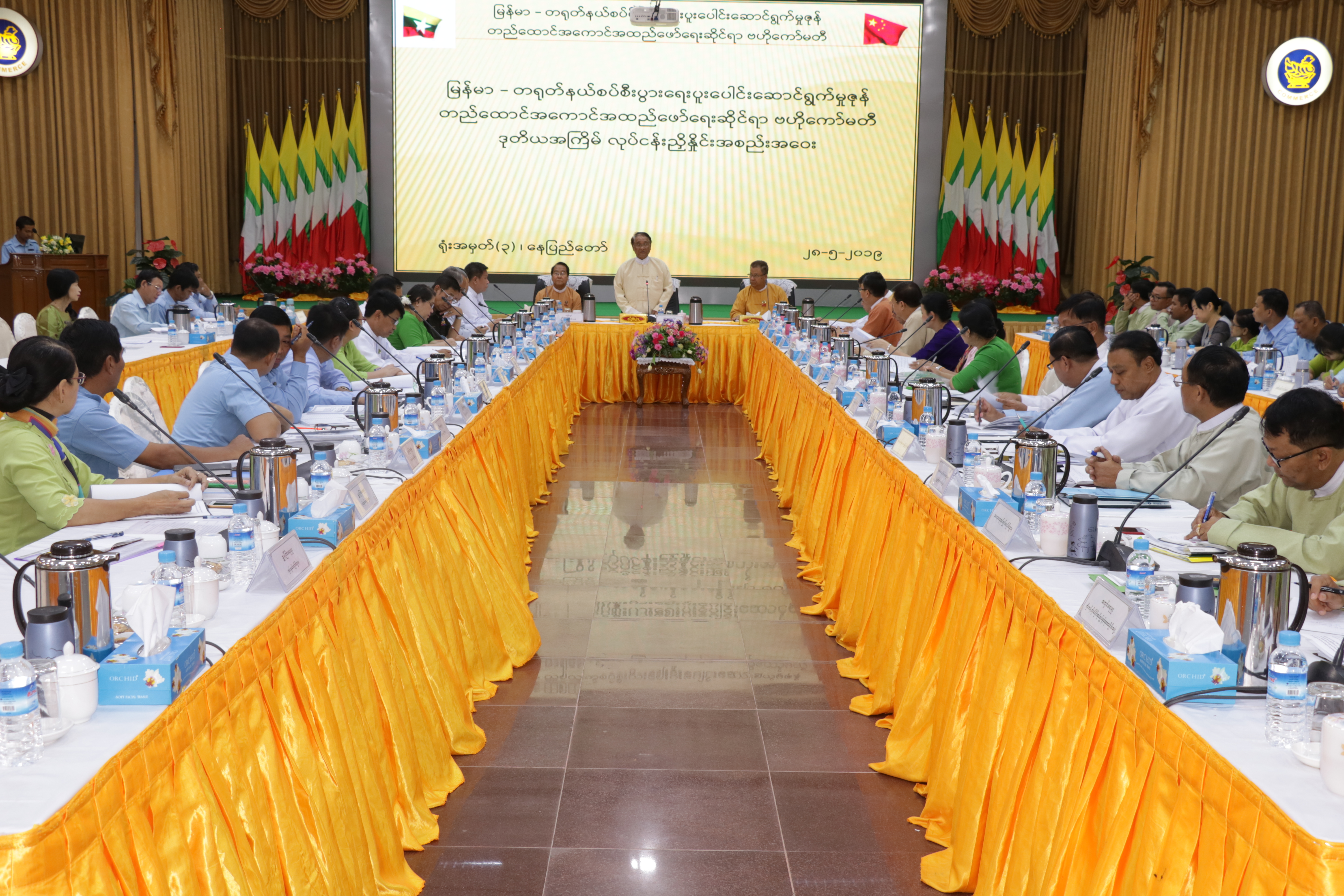၂၀၁၉ ခုနှစ်၊ မေလ ၂၈ ရက်နေ့ (၁၄:၀၀) နာရီအချိန်တွင် စီးပွားရေးနှင့် ကူးသန်းရောင်းဝယ်ရေးဝန်ကြီးဌာန၊ ရုံးအမှတ်(၃)၊ ညီလာခံခန်းမ၌ ကျင်းပပြုလုပ်သော မြန်မာ-တရုတ်နယ်စပ်စီးပွားရေးပူးပေါင်းဆောင် ရွက်မှုဇုန် တည်ထောင်အကောင်အထည်ဖော်ရေးဆိုင်ရာဗဟိုကော်မတီ ဒုတိယအကြိမ် လုပ်ငန်းညှိနှိုင်းအစည်းအဝေး သို့ မြန်မာ-တရုတ်နယ်စပ်စီးပွားရေးပူးပေါင်းဆောင်ရွက်မှုဇုန် တည်ထောင်အကောင် အထည်ဖော်ရေးဆိုင်ရာ ဗဟိုကော်မတီဥက္ကဌ၊ စီးပွားရေးနှင့် ကူးသန်းရောင်းဝယ်ရေးဝန်ကြီးဌာန၊ ပြည်ထောင်စုဝန်ကြီး ဒေါက်တာသန်းမြင့် တက်ရောက်အဖွင့်အမှာစကားပြောကြား