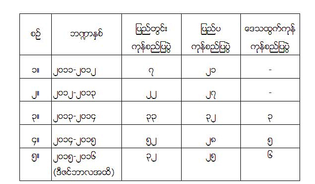 | စဉ် | ဘဏ္ဍာနှစ် |